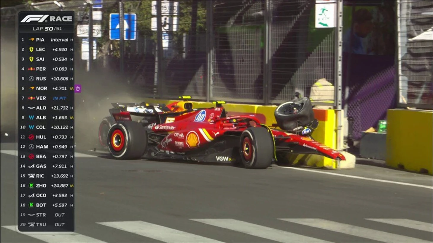 Сайнс и Перес столкнулись на предпоследнем круге Гран-при Азербайджана
