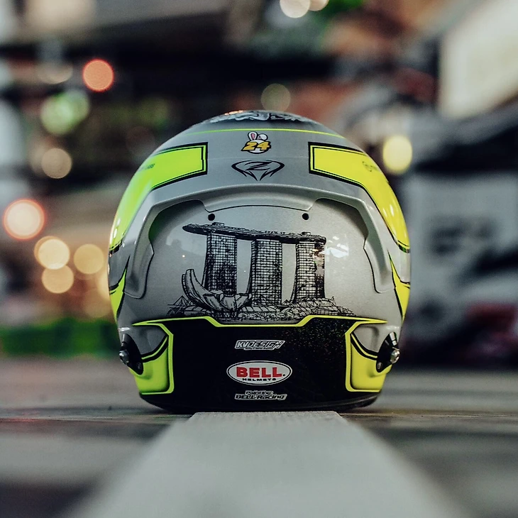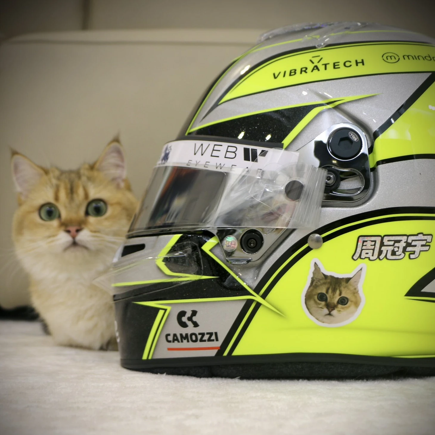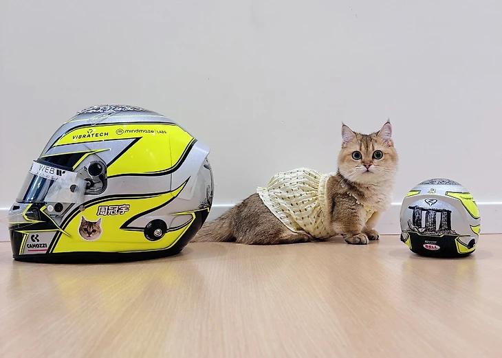Чжоу разместил фото своей кошки на шлеме для Гран-при Сингапура