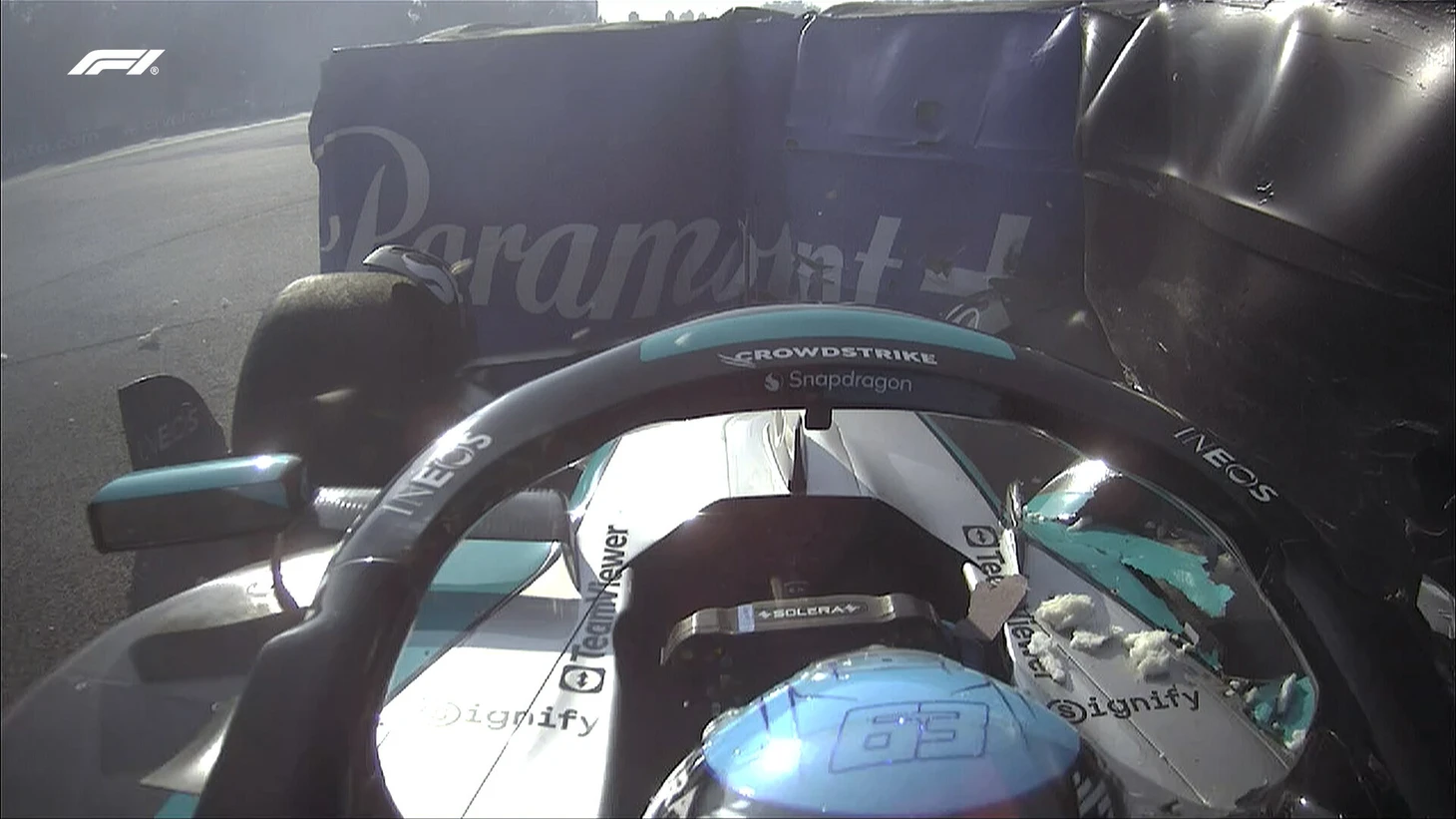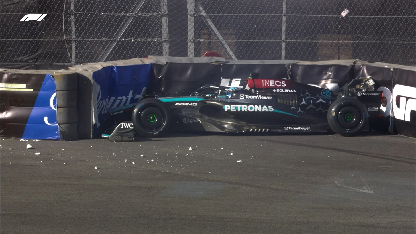 Расселл разбил болид во 2-й практике в Мексике и вызвал красные флаги