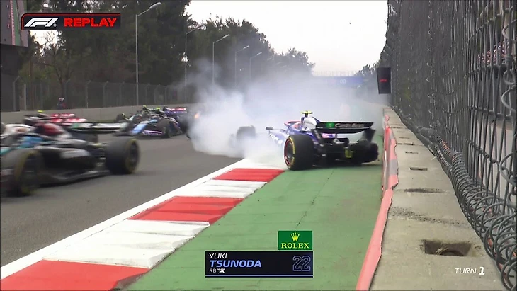 Цунода и Албон сошли после столкновения на первом круге Гран-при Мехико