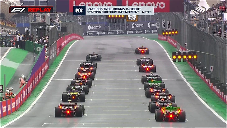 Пилот «Макларена» на старте установочного круга перед Гран-при Сан-Паулу сорвался с места до появления стартового сигнала. В результате за ним последовали большинство остальных пилотов.