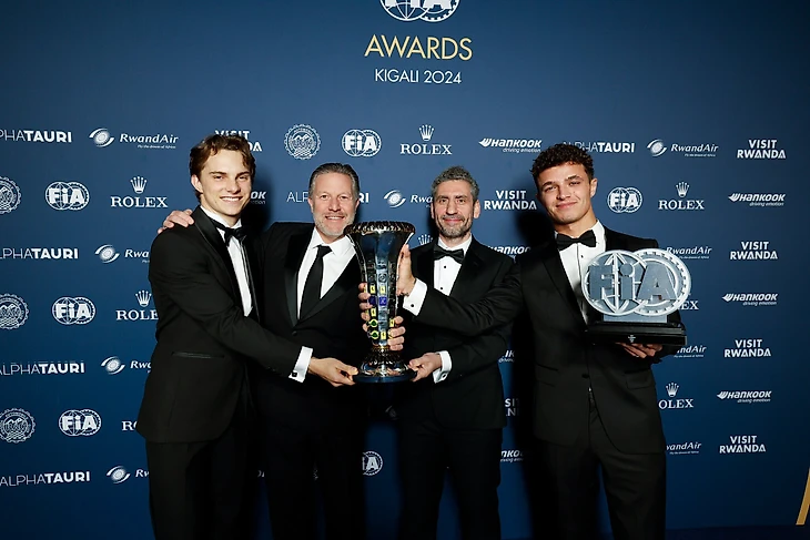 «Макларен» получил первый с 1998 года Кубок конструкторов. За трофеем на сцену вышли боссы Зак Браун и Андреа Стелла, а также Норрис и его напарник Оскар Пиастри.