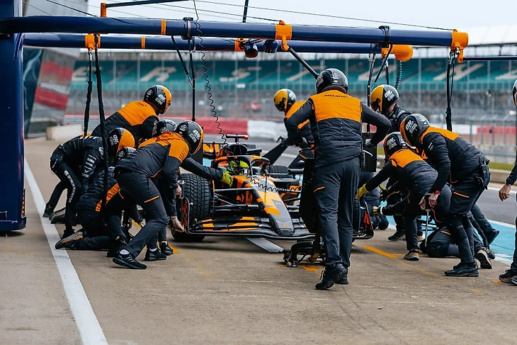 Ландо Норрис и Оскар Пиастри провели обкатку машины в камуфляжной ливрее в рамках съемочного дня в Сильверстоуне.