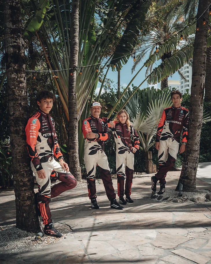 Команда «Мерседес» продемонстрировала фотографии новых гоночных комбинезонов, в которых на Гран-при Майами будут выступать Джордж Расселл и Андреа Кими Антонелли.