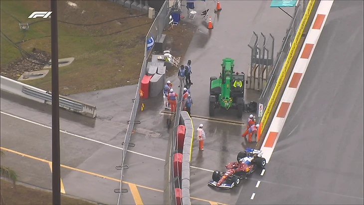 Пилот «Феррари» Шарль Леклер не сумел справиться с управлением болидом в дождевых условиях, поскольку столкнулся с эффектом аквапланирования, когда направлялся из боксов на стартовую решетку за полчаса до запланированного старта спринта перед Гран-при Майами. При этом Леклер ехал не на дождевых, а на промежуточных шинах.