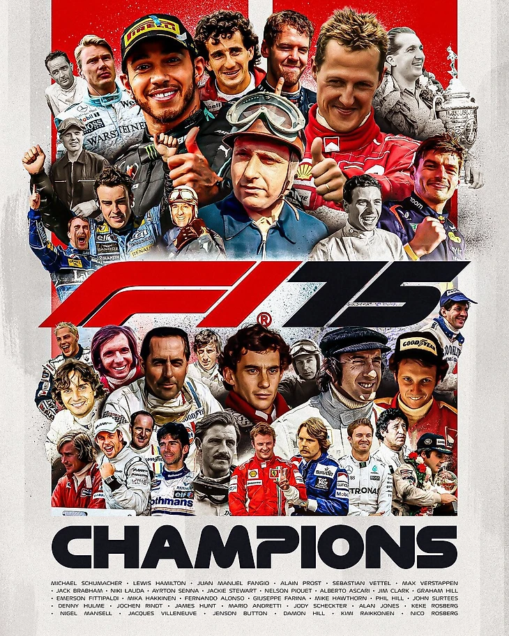 «Ф-1» в день 75-летия первой гонки выложила постер со всеми чемпионами