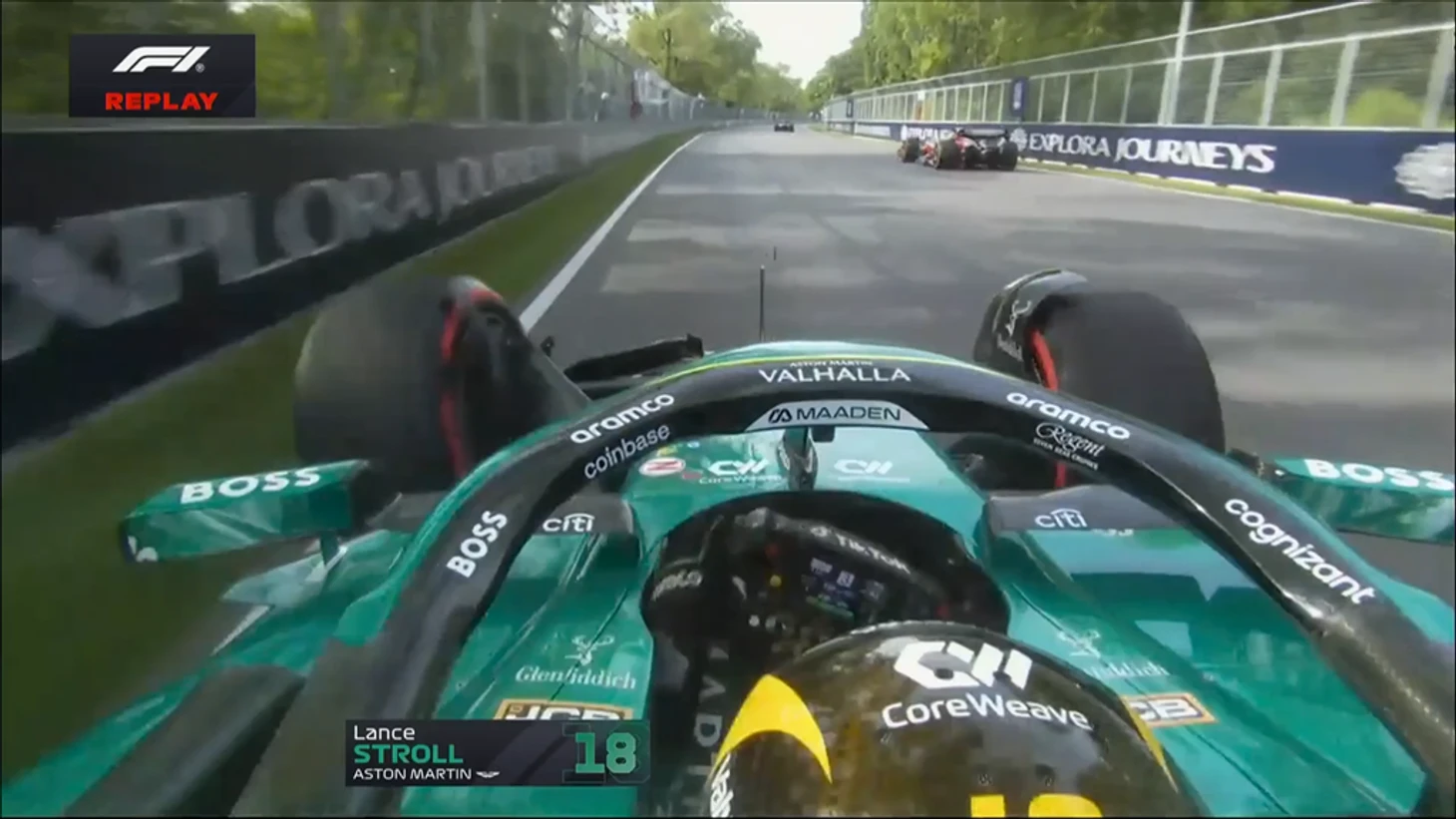 Стролл задел колесом стену при прохождении 7-го поворота и сломал подвеску на левом переднем колесе.