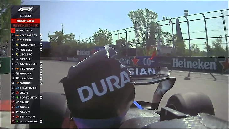 Примерно за 5,5 минут до конца первого сегмента на болиде Албона, который в этот момент ехал по прямой на высокой скорости, развалился кожух двигателя. Обломки корпуса усыпали трассу и дирекция Гран-при была вынуждена остановить квалификацию красными флагами.