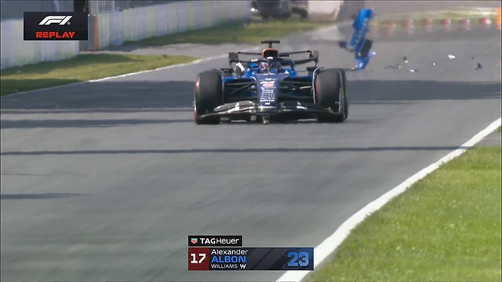 На болиде Албона развалился кожух двигателя по ходу квалификации к Гран-при Канады