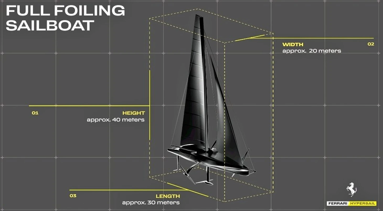 Презентация проекта, получившего название Hypersail, состоялась в Маранелло. Длина корпуса составляет 100 футов (чуть более 30 метров) – это будет первая в мире монокорпусная фойлинговая яхта.