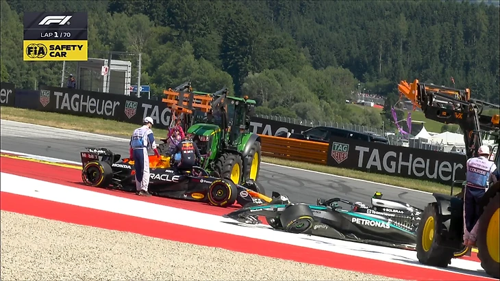 Пилот «Ред Булл» Макс Ферстаппен и гонщик «Мерседеса» Андреа Кими Антонелли столкнулись на первом круге Гран-при Австрии.