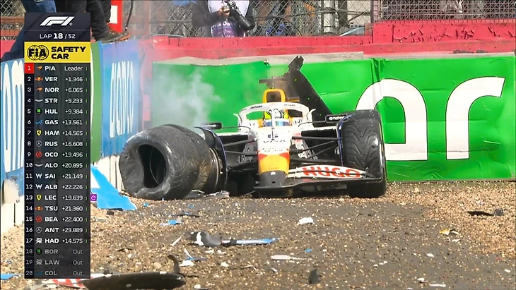 Гонщик «Рейсинг Буллз» Изак Аджар завершил Гран-при Великобритании в ограждениях.