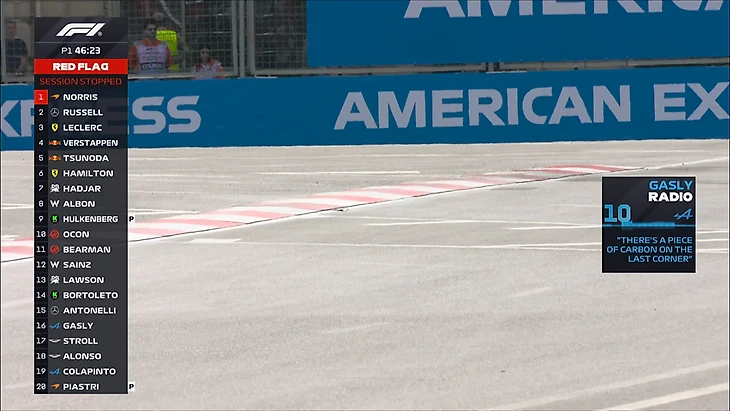 Проезжавший позади Пьер Гасли из «Альпин» посчитал, что на трассе лежат обломки – однако оказалось, что поврежден сам участок трека.