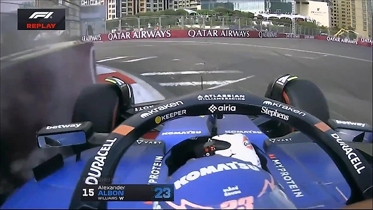 Албон врезался в барьеры, квалификация в Баку прервана красными флагами