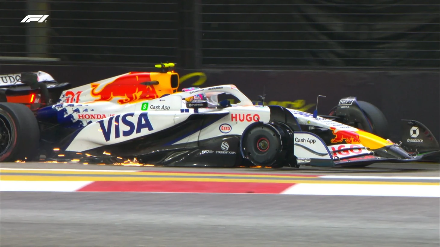 Пилот «Рейсинг Буллз» Лиам Лоусон попал в аварию, врезавшись в барьеры во время второй сессии свободных заездов перед Гран-при Сингапура.