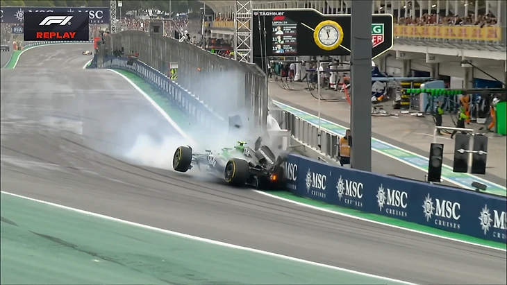 Пилот «Заубера» Габриэл Бортолето разбил болид на последнем круге спринта перед Гран-при Сан-Паулу.