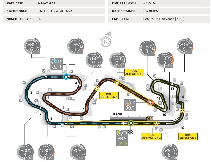 ФИА подтвердила информацию о том, что на предстоящем Гран-при Испании будет две зоны активации регулируемого заднего антикрыла. Первая из них будет расположена на задней прямой, при этом точка замера расстояния между болидами перед ней будет находиться перед входом в девятый поворот.