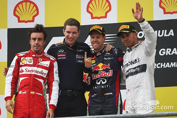 Марк Уэббер был не очень в хорошем настроении, когда провалил старт. Затем на девятом круге в повороте La Source прямо перед австралийцем с пит-лейна выехал пилот «Феррари» Фернандо Алонсо. «Мы поравнялись в начале поворота О Руж, а затем я его прошел», - говорит Уэббер. – «Мне было очень важно оказаться в середине поворота, потому что там мы («Ред Булл») традиционно были быстрее остальных. В итоге я совершил этот обгон без контакта, потому что между нами было доверие».