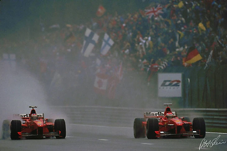 «Я не помню такого случая, когда я так терял самообладание над собой. Надеюсь, что такого больше никогда не повторится», - сказал Михаэль Шумахер после знаменитого противостояния с Дэвидом Култхардом на пит-лейне в Спа. Немец схватил шотландца за воротник и с возмущением спросил: «Ты *** пытаешься меня убить?». Столкновение Михаэля Шумахера и Дэвида Култхарда, стало одним из самых драматичных моментов сезона, споры о котором не утихают по сей день. Михаэль Шумахер лидировал и проходил, отстающего на круг, Дэвида Култхарда из «Макларена». Дэвид, несмотря на синие флаги, в течение трех кругов не пропускал его, из-за чего Жану Тодту пришлось сходить на капитанский мостик «Макларен» и лично заострить на этом внимание Рона Денниса. Кругом позже Михаэль уже вплотную настиг шотландца и готов был его обойти, когда Дэвид после прохождения одного из поворотов замедлился, но при этом остался на траектории, и немецкий пилот, из-за плохой видимости, не успел сместиться левее из-за чего произошло столкновение, в результате которого болид Шумахера потерял правое переднее колесо. Стюарды не нашли ничего такого в действия Култхарда. Тем не менее, несколько лет спустя шотландец признал свою вину. «Я просто испытывал его тормоза», - пояснил Култхард. «У меня получалась сложная гонка, но я не должен был этого делать. Сейчас бы я уже так не поступил, но в 98-м у меня еще просто не было опыта и мастерства».