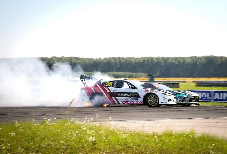 На параде участников и автограф сессии Катя традиционно собрала огромное количество желающих сфотографироваться с ней. После общения с болельщиками последовала самая волнительная часть этапа – парные заезды Топ-32. Согласно результатам квалификации первым соперником пилотессы стал сокомандник по «Evil Empire» Смирнов Павел из Санкт-Петербурга на Toyota Supra. После двух боевых заездов однозначное решение судей: Екатерина побеждает и проходит в Топ-16. В борьбе за выход в Топ-8 ее оппонентом стал Максим Твардовский на Nissan Silvia S14. Первый заезд в роли лидера пилотессе удался великолепно – уверенное выполнение судейского задания, отличные скорость и траектория, результат в пользу Екатерины. В роли второго номера все прошло не так гладко: Катя совершила несколько ошибок, и с небольшим перевесом Максим прошел дальше, а для девушки гонка завершилась под бурные овации трибун.