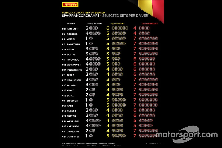 На этот раз «Пирелли» привезли «софт», «медиум» и «суперсофт». У команд есть много вариантов различных стратегий в гонке.