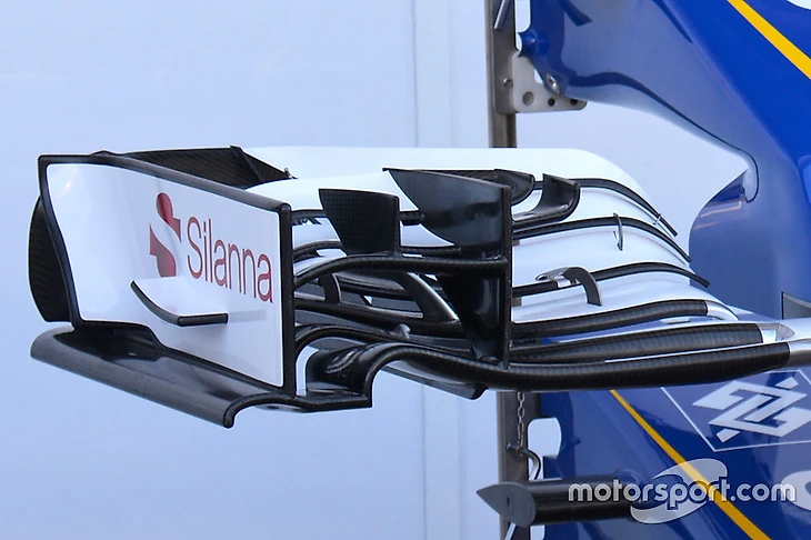 Также в рамках пакета обновлений команда привезла в Спа новые «носы» (на фото модернизированная версия – сверху). Их кончик стал куда короче, к тому же, он заметно смещен назад. Это, в свою очередь, потребовало переделки пилонов.