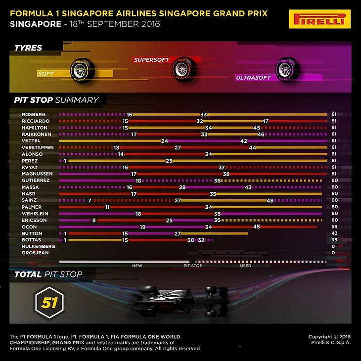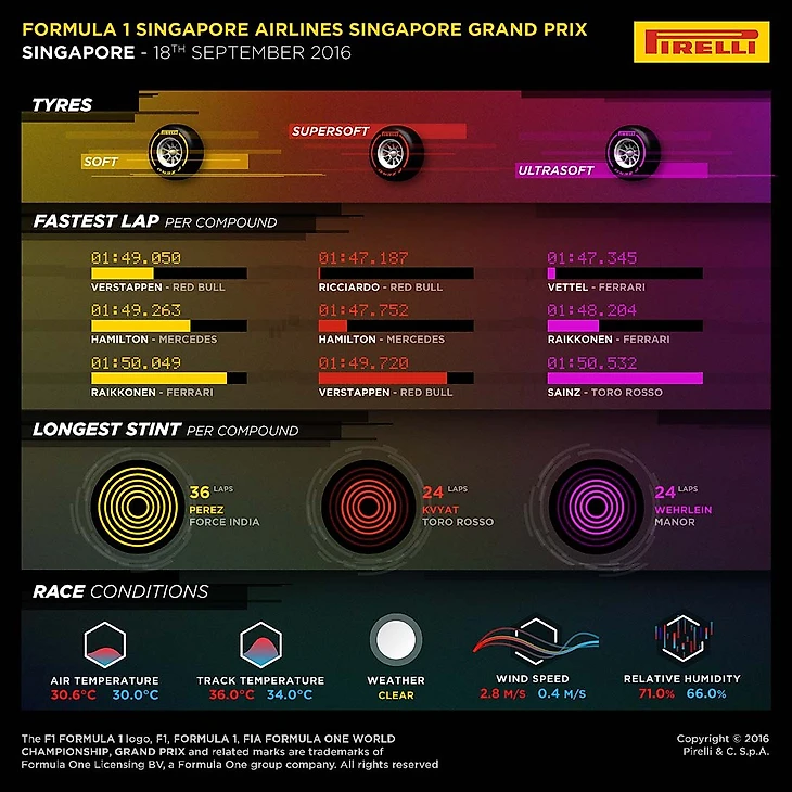 Причиной тому стало единственное появление машины безопасности, на одно меньше чем год назад и 14 в девяти гонках в Сингапуре. Еще ни одна гонка в городе-государстве не проходила без появления пейс-кара.