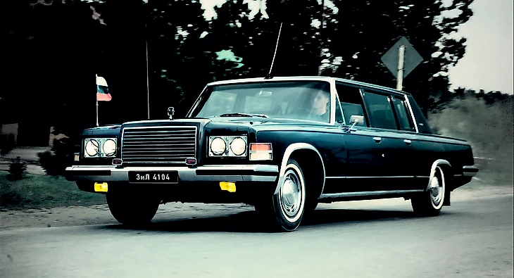 Это 7,7-литровый заднеприводный ЗИЛ 4104 1988 года выпуска с социалистическим автоматом – он предназначался для высших руководителей государств восточного блока. Под его длинным капотом слышатся все 315 лошадиных сил, заставляющих сжигать 22 литра бензина каждые 100 километров. Внутри все тоже стильно. Салон, который делится на пассажирский уголок и кабину для водителя с охранником, сшит и собран из высококачественной кожи, плюша и шпона карельской березы.