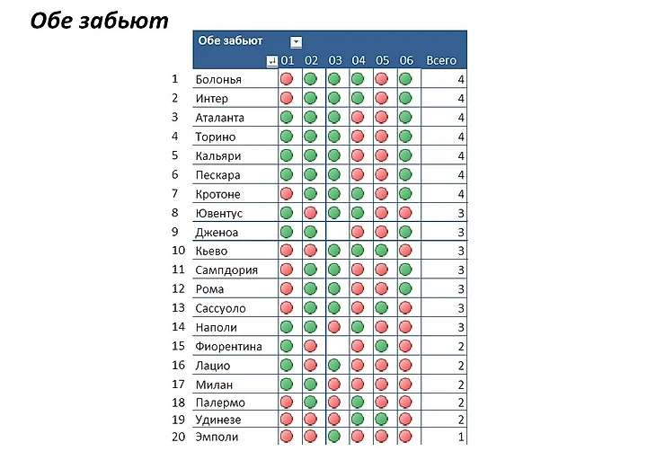 В 6 стартовых встречах Эмполи ставка "Обе забьют" сыграла лишь раз, в 6 играх Ювентуса 3 раза (в 3 гостевых встречах 1 раз)