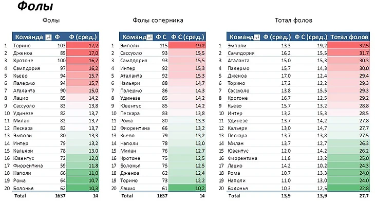 Оцифровка №7. Статистика команд Серии А перед 7 туром