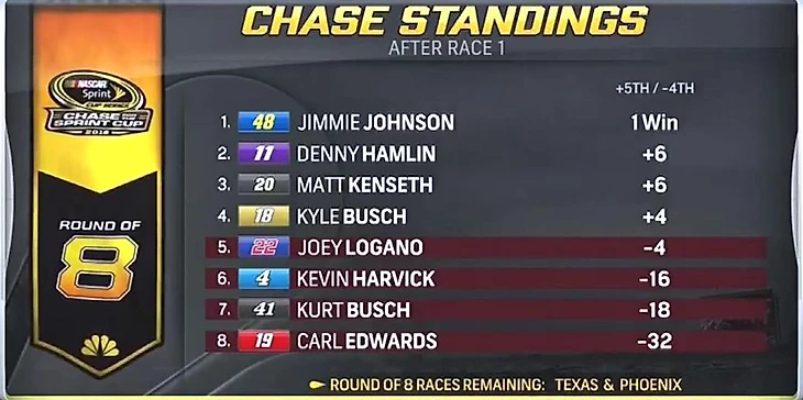 Джимми Джонсон и Карл Эдвардс. Именно два этих пилота могут позволить себе расслабиться в Финиксе, ибо они уже прошли в финал. А вот за оставшиеся две позиции развернется борьба не на жизнь, а на смерть. У Логано, Кайла Буша, Кенсета и Хэмлина шансы на попадание в финал практически одинаковые. Разница в три балла, по сути, является настолько несущественной, а учитывая, что в NASCAR даются дополнительные очки, как, например за большее количество кругов в качестве лидера, так и за один круг на первой позиции, то разницу в +1 или -2 можно вообще не учитывать на данный момент. Критической она станет только на последних кругах Финикса, когда даже равное количество зачетных баллов может отправить одного в финал, а другого оставить у разбитого корыта. Остин Диллон не даст соврать.