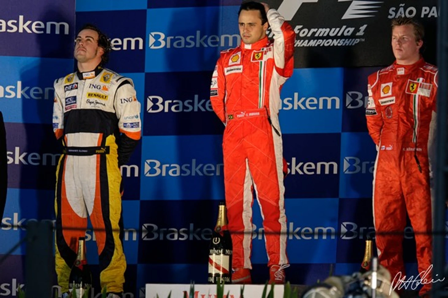 В хаотичной дождевой гонке ему не было равных, в то время как Льюис всю дистанцию боролся где-то далеко позади... Финишируя первым в домашнем Гран-При под ликование торсиды, Фелипе был виртуальным чемпионом и оставался им в течение 38 секунд, пока заветную черту не пересёк Хэмилтон, в последнем повороте обогнавший Тимо Глока и поднявшийся на пятое место, которого было достаточно для завоевания чемпионского титула.
