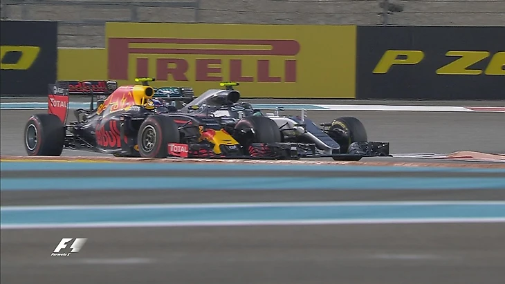 Ну что ж, #РОСБЕРГЧЕМПИОН Нико Росберг занял вторую позицию на Гран-При Абу-Даби и с отрывом в 5 очков выигрывает чемпионат в напряженнейшей борьбе. Надо признать, что гонка на кольце Яс-Марина получилась валидольной — и это даже не беря в расчет чемпионскую гонку. Тут вам и непонятный сход Квята (again!), и сломанная стойка правого переднего у Баттона, невероятное столкновение Палмера и Сайнца, невероятный Феттель, сдувшийся Рикардо, спокойно отъездивший Ферстаппен… В общем, материала на статью-другую, но сейчас я ограничусь все-таки борьбой в первой четверке.