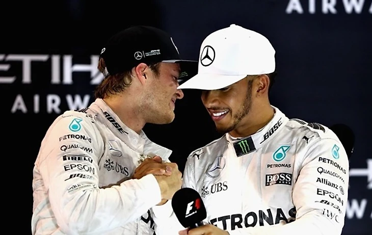 Так или иначе, Хэмилтон попытался накалить интригу (или окончательно убить, но в свою пользу) собирая за собой пелотон и позволяя Феттелю, Риккардо и Ферстаппену попытаться обогнать Росберга (и между собой за третье место тоже побороться), но тот держал идеальную траекторию и даже умудрился пошутить: «Льюис едет очень медленно. Пожалуйста, дайте нам поменяться с ним позициями, и если он будет в конце гонки вторым, я его пропущу». Оно-то и было бы логичным такое поведение — если бы не остановка на одном из поворотов предпоследнего круга — что чуть не стоило потери позиции Нико и потери своих болидов для Себа и Дэна — Риккардо чуть не врезался в Феттеля, а тот почти задел Росберга. Тогда Падди Лоу попросту передал Хэмилтону, что не будет ему чемпионства при настолько намеренно медленном темпе, на что Льюис попросту ответил: «Мне комфортно так пилотировать». Я все понимаю, комфорт, это хорошо, но когда твой комфорт задевает безопасность других пилотов — это уже, кажется, походит на маниакальное влечение к титулу. В любом случае, на 55-ом круге Льюис признал, что титул потерян, но он все еще хочет выиграть Гран-При. Что ж, Хэм, оно твое. Но не четвертый титул, нет. Стоит признать, что мужества поздравить Нико и Хэма хватило и они даже пожали друг другу руки! Интервьюер даже попросил их пожать руки еще раз — надо же сфотографировать столь значимый момент для истории королевских гонок!