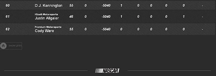 "Рыжий лев" в этом сезоне не смог подписаться на полное расписание и метался между Front Row и Premium. Двадцать шесть гонок, трижды непройденная квалификация, пропуск концовки чемпионата (вернее, доезжание концовки в другой серии), остракизм от лучшего новичка Xfinity, Эрика Джонса - Уитту нечем хвастаться. Конечно, он и раньше не хватал звезд с неба, но в национальном первенстве он выглядел неплохо. Пока, правда, сильные коллективы обходят его стороной.