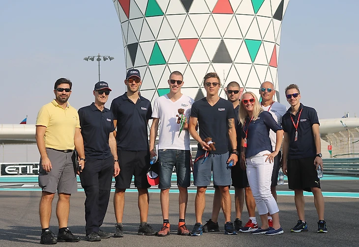 Наступило воскресенье, а с ним и финальная гонка этого сезона. Последний рывок, после которого всю команду ждет заслуженный отдых. Во второй гонке Артему Маркелову предстояло стартовать с шестой позиции, в том время, как его напарник должен был отправить с 10-го места. Трасса Yas Marina Circuit хоть располагает двумя длинными прямыми, очень сложная с точки зрения обгонов. Это и предопределило исход второго гоночного заезда: Артем финишировал седьмым, проведя практически всю гонку, атакуя Антонио Джовинации, а Раффеэле приехал вне очковой зоны - финишную черту он пересек 13-м.