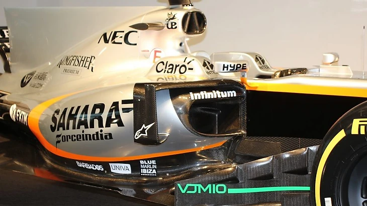Носовой обтекатель шасси VJM10 сохранил уже традиционные для машин команды «Форс Индия» ноздри, но в этот раз их решили прорезать в передней части. Таким образом, внешние части конструкции образуют своеобразные пилоны, удерживающие переднее антикрыло, позволяя воздушному потоку легче проникать под шасси в области центральной секции.