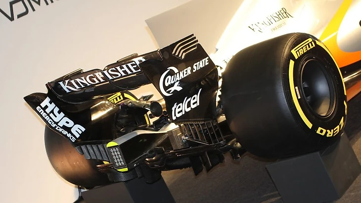 Заднее антикрыло в новом сезоне будет значительно шире в размерах и устанавливаться будет ниже. В отношении геометрии торцевых пластин команда «Форс Индия» не удивила – они пошли по пути «Зааубер» и «Рено», сделав своеобразные скосы в задней части торцевиков.