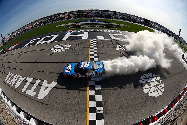 Пикапы, разумеется, решили немного оживить подзаснувшую публику. Вместе с тем, как солнце скрывалось за горизонтом, страсти накалялись. Гонщики CWTS были не таку податливы, как парни из Xfinity, и Кайл Буш, который оперативно сменил свою машину на пикап никак не мог опередить другого гонщика на Тойоте - Кристофера Белла. А тот, в свою очередь не только хорошо начал, но и здорово закончил. Выиграл оба сегмента, набрал кучу очков себе в регулярку и плей-офф и еще победу одержал в итоге. Нет, конечно, не вылети Кайл Буш, он бы наверняка смог бы дожать "наглого юнца", да правда, юнцы и старцы в NCWTS не пальцем деланы. Поэтому гонка в Атланте для пикапов прошла поинтереснее.