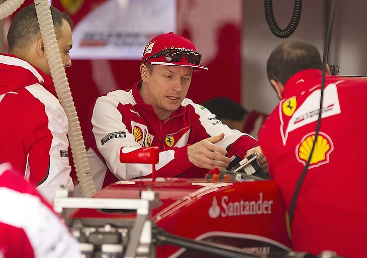 Райкконен переделывает дизайн подвески, попутно тестируя командную экипировку на водонепроницаемость.