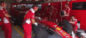 Как и полагается итальянцам, они не успели вовремя, что немного раздражает Райкконена во время сборки болида.