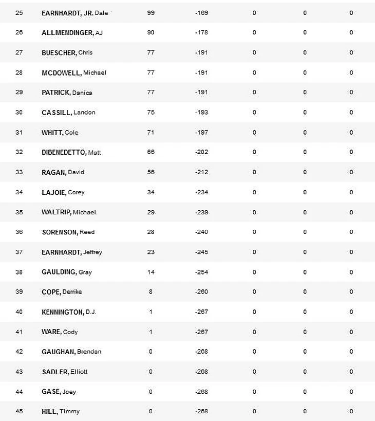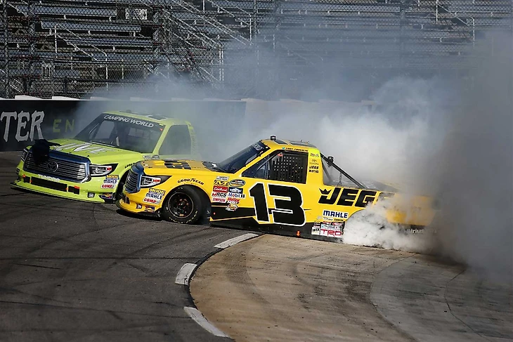 Зато приятно удивил Ноа Грэгсон. Парень, который упустил в прошлом году оба титула в региональных сериях и проводящий свой первый сезон в одном из элитных дивизионов NASCAR был довольно активен. Сначала он оказался жертвой разворота, а после попробовал рискнуть с тактикой, что вывело его аккурат за спины лидеров, которым он дал настоящий бой. В итоге Грэгсон смог занять четвертое место и стал настоящим открытием вечера. Чемпион Дэйтоны - Кэз Грэла потерялся в районе пятнадцатой позиции, чемпион ARCA - Чейз Бриско стал одиннадцатым.