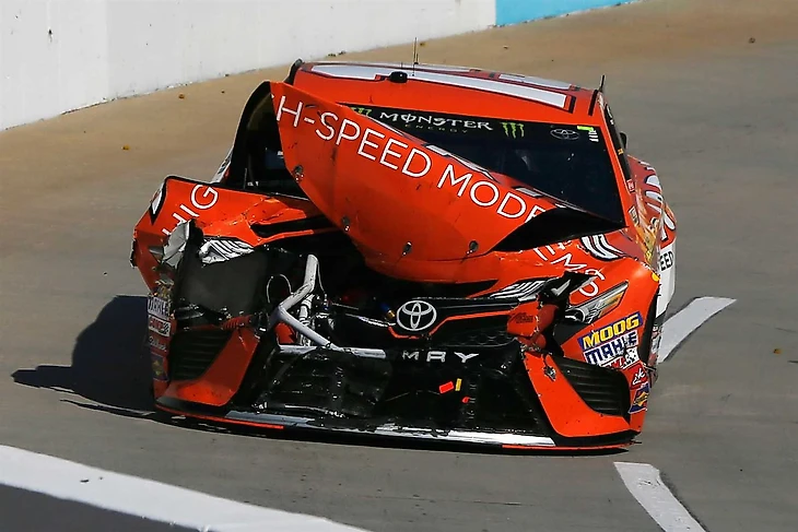 Дэйл Эрнхардт-младший не смог продолжить гонку после этого столкновения.