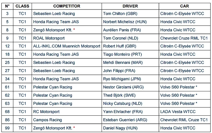 В межсезонье ушли Ситроен и Лада, и если первые передали машины SLR и Мюниху, то с Вестами вопрос надолго подвис в воздухе, решившись лишь в марте, зато Вольво и Хонда выставили по три заводских болида. В общем, как бы то ни было, необходимых по коммерческим условиям 16 пилотов набиралось впритык и в итоге так и не набралось. Вот список тех, кто будет стартовать в Марокко: