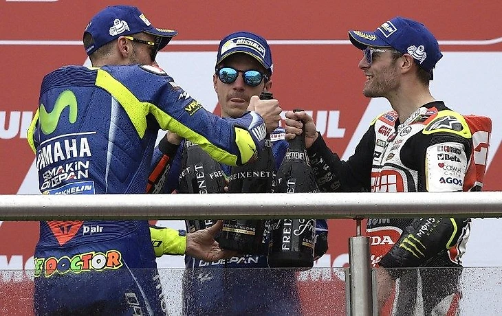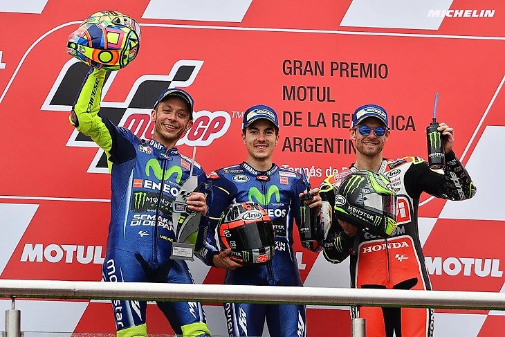 Обладатели подиума: Валентино Росси, Маверик Виньялес и Кэл Кратчлоу.