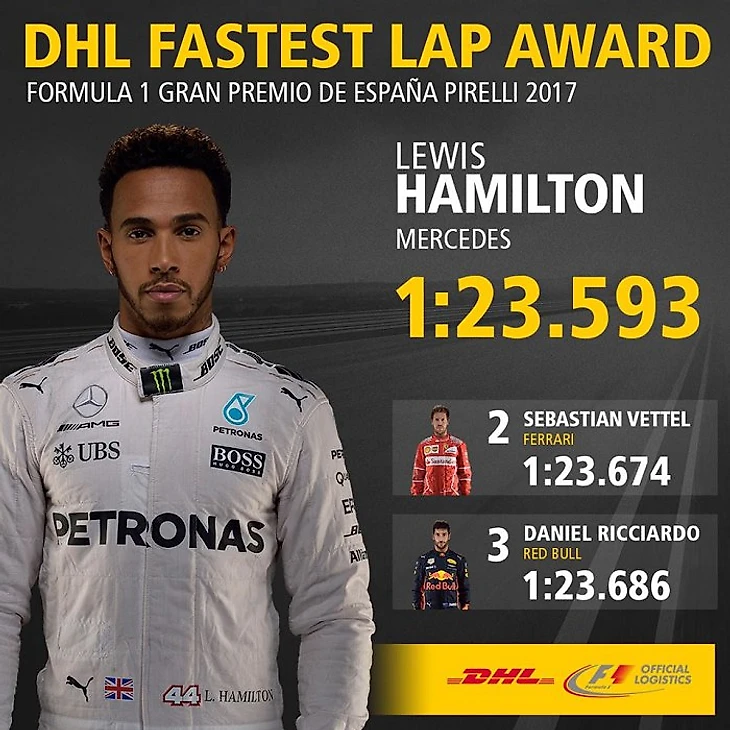 Благодаря обгону на 44 круге пилот машины под номером 44 - Льюис Хэмилтон - одержал вторую в карьере победу на ГП Испании и стал первым за 11 лет пилотом выигравшим две гонки в Барселоне.