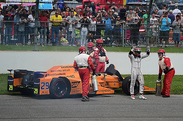 Как бы японцы ни хвастались своими двигателями, которые используются в «Индикаре», в это воскресенье они подвели не только испанца. Сначала все увидели сход одного из главных претендентов на победу Райана Хантера-Рэя, затем Чарли Кимболла, а за 21 круг до конца — и Алонсо. У всех двигатель ломался с одним и тем же противным звуком, так что нет никаких сомнений — это «Хондец».