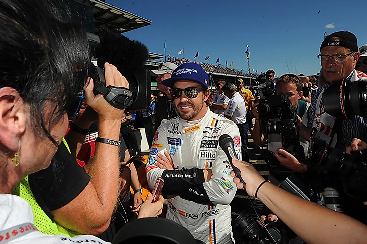 Как ни странно, американцы с огромным пиететом отнеслись к двум чемпионским титулам Фернандо в «Формуле-1». Его принимали как настоящую звезду мирового масштаба, много о нем рассказывали и постоянно показывали записи с бортовых камер его болида. На каждом из 27 кругов, которые Алонсо возглавлял пелотон, комментаторы взахлеб расхваливали таланты гонщика из Европы. Создалось ощущение, будто на «Инди-500» в этом году происходит что-то необыкновенное и сверхъестественное.