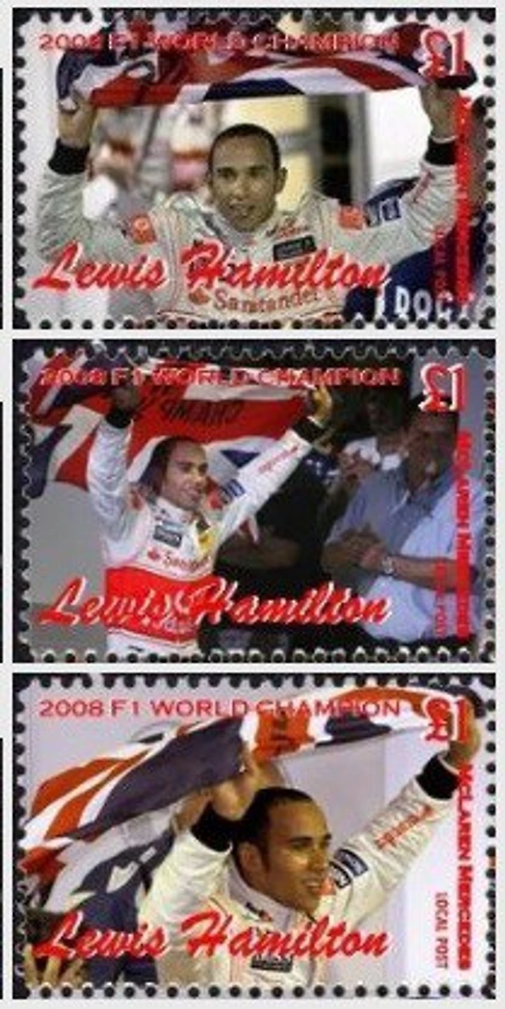 Но у англичан таких личностей просто больше всех. Королевская почта Великобритании выпустила в 2007 году целый марочный сет с изображениями болидов самых крутых пилотов Туманного Альбиона.