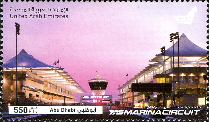 А вот Абу-Даби пока из календаря уходить не собирается. Гонку здесь впервые приняли в 2009 году — и, конечно, отметили это дело выпуском памятной почтовой продукции. На ней изобразили самую узнаваемую часть трассы «Яс-Марина» — стартовую прямую.
